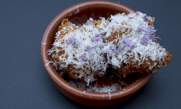 A welcome break from the unapologetically meaty menu arrives in the form of cheese and chive fritas, among the small but considered veggie options on offer.
