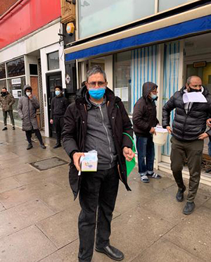 Rahman handing out face masks. Photograph: courtesy Oliur Rahman