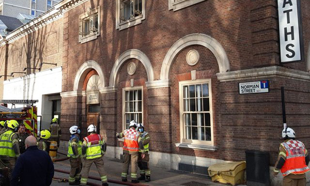 Seventy firefighters tackle blaze at historic swimming baths