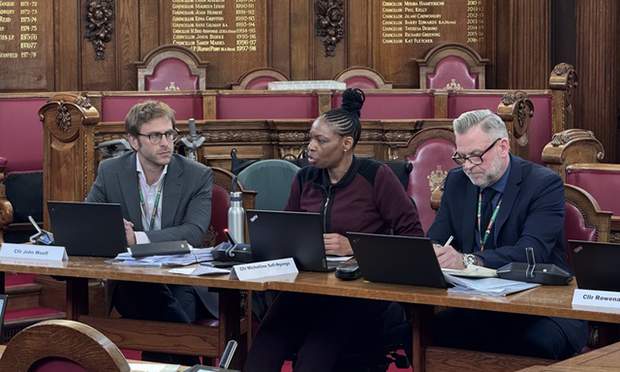 (L-R) Cllr John Woolf, children and young person’s lead, Cllr Michelline Safi-Ngongo, and director of children’s services Jon Abbey. Photograph: Josef Steen / free for use by LDRS partners